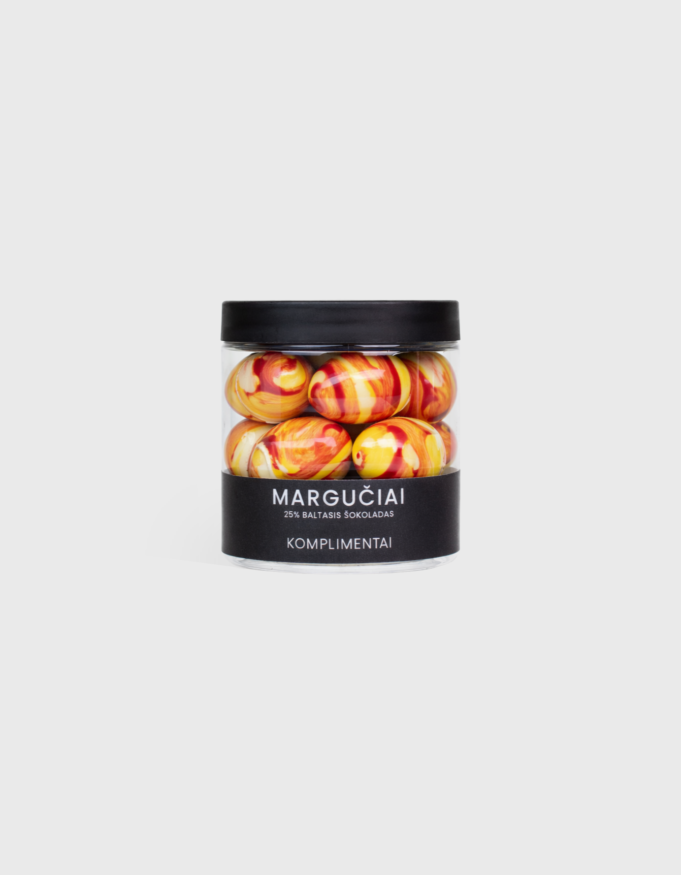 Maži, rankų darbo šokoladiniai kiaušiniai – pavasariška nuotaika kiekviename kąsnyje. Pagaminti iš aukštos kokybės belgiško baltojo šokolado (25,9 % kakavos sviesto), džiugins švelniu, kremišku skoniu ir spalvingu dizainu.